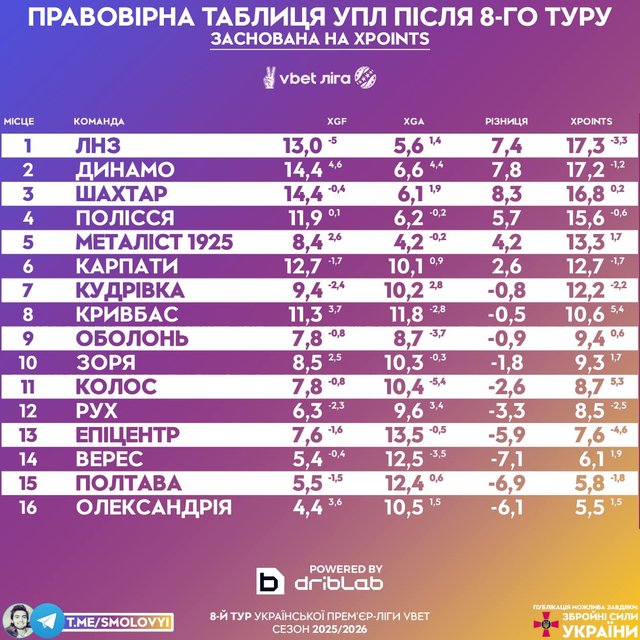 Варто додати, що у турнірній таблиці за реальними набраними очками лідирує Шахтар з 17 балами, на одне очко менше у Динамо, а ЛНЗ має у своєму активі 14 пунктів, розташувавшися на шостій сходинці.