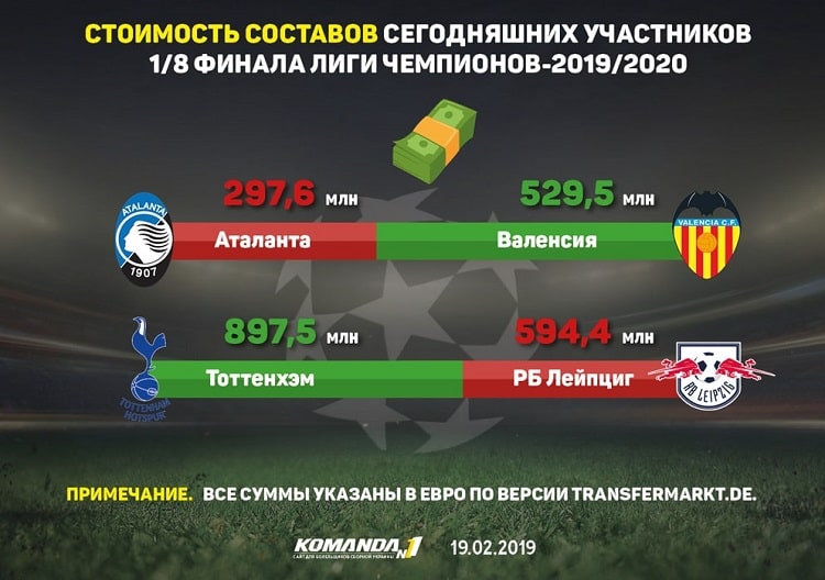 «Аталанта» прийме «Валенсію» у першому матчі 1/8 фіналу Ліги чемпіонів поточного сезону. Італійський клуб йде фаворитом в котируваннях букмекерів з коефіцієнтом 1,74 на перемогу. На нічийний результат можна поставити за 3,95, а на успіх іспанського клубу дають 4,5.
