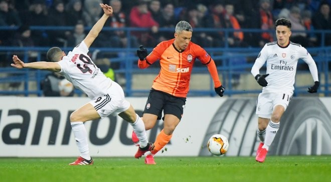 Шахтар непогано агресивно розпочав, високо зустрічаючи португальців. Декілька разів це призводило до втрат суперника, але нічого серйозного створити не вдалося. Бенфіка зробила першу вилазку на 5-й хвилині. Матвієнко дозволив «орлам» заробити кутовий, оце і вся загроза. Мораєс класно пограбував опонента в центрі поля, однак Тайсон і Марлос не довели контру до пуття. Перші удари в матчі ми побачили на 13-й. Спочатку Коваленко пробив прямо в коліно захиснику, а потім у Тайсона снаряд відверто звалився з ноги.