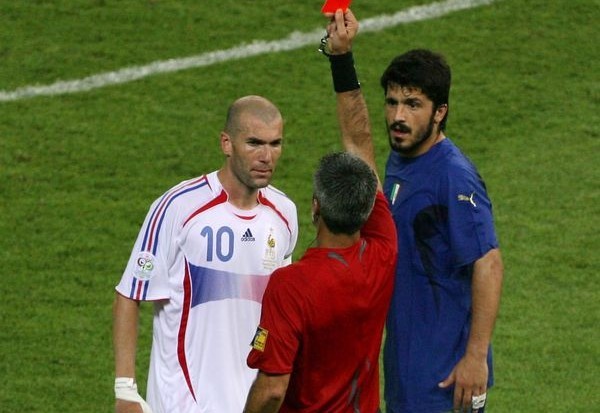 Именно Зидан был удалён в финале чемпионата мира-2006 за удар Марко Матерацци головой, однако в сборной Италии играли не паиньки. Сам Матерацци был актёром от бога, умеющим своей мимикой и поддёвками вывести из себя любого. Также он всегда любил жёсткий подкат, да и локтями он махал на манер ветряной мельницы. Его называли антифутболистом, но ему было всё равно.
