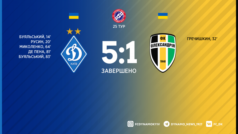 «Динамо» – «Олександрія» – 5:1 (2:1).