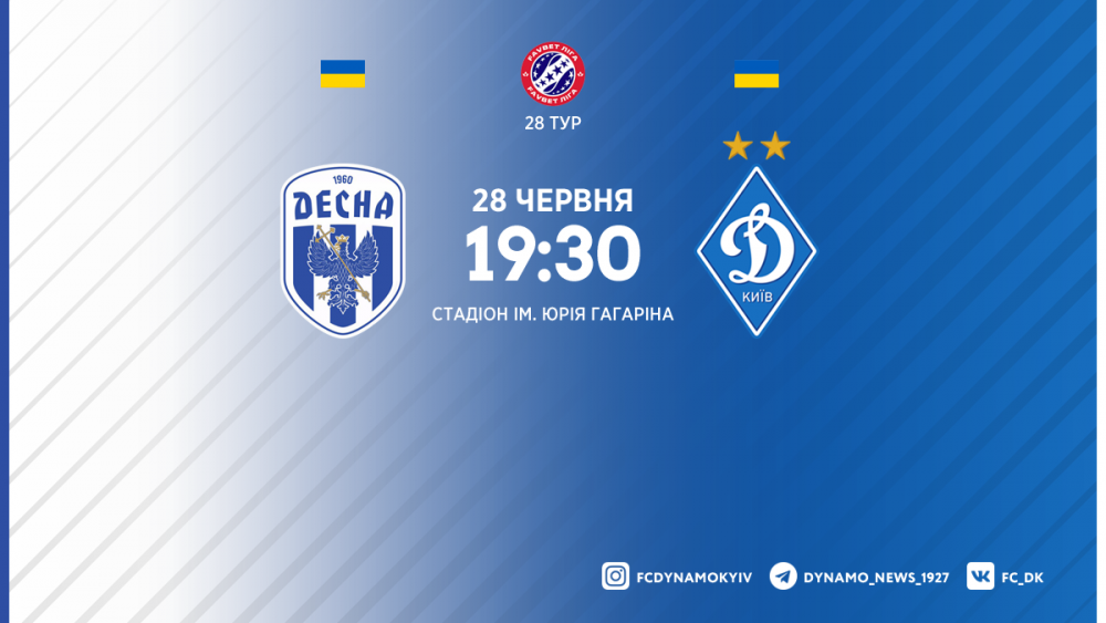 У неділю, 28 червня, динамівці поміряються силами з «Десною» у матчі 28-го туру Favbet Ліги (початок зустрічі – о 19:30).