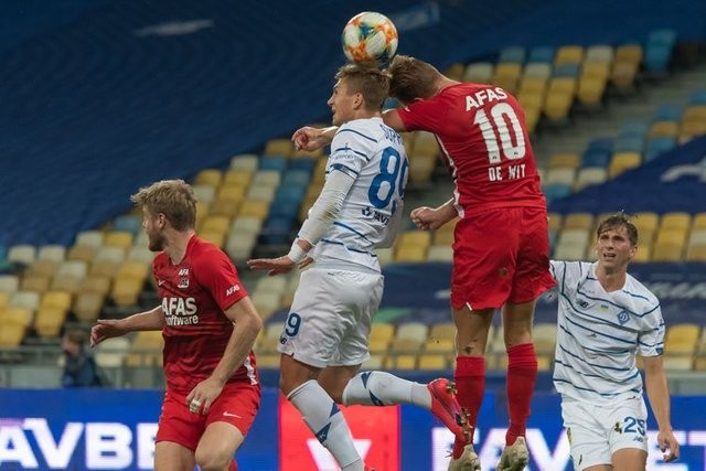 У кінцівці тайму гравці Динамо в контратаці підстерегти своє щастя, коли після не найвдалішої гри кіпера АЗ Шапаренко, здавалося, зняв всі питання в матчі.