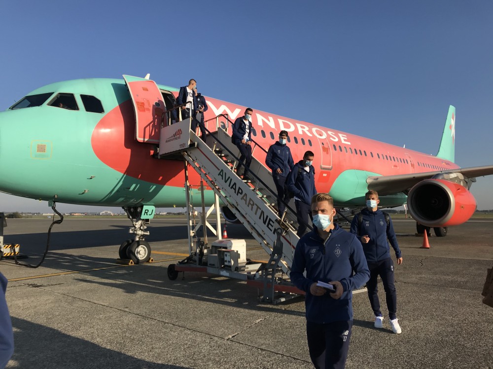Пандемія COVID-19 вплинула на багато аспектів звичного життя. Аеропорт «Бориспіль» серед робочого дня виглядав лякаюче пустинним. Не було звичного шуму від туристів та довгих черг на стійках реєстрації, з вікон зали очікування виднілися лише кілька літаків. Приїхавши до терміналу на клубному автобусі, динамівці швидко пройшли обов’язковий температурний скринінг, паспортний та митний контроль та швидко прокрокували до літака компанії Windrose, який здійнявся в небо навіть трохи раніше запланованого часу.