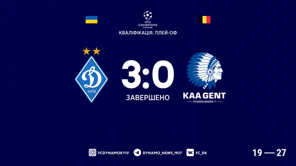 «Динамо» (Київ, Україна) – «Гент» (Бельгія) – 3:0 (2:0).