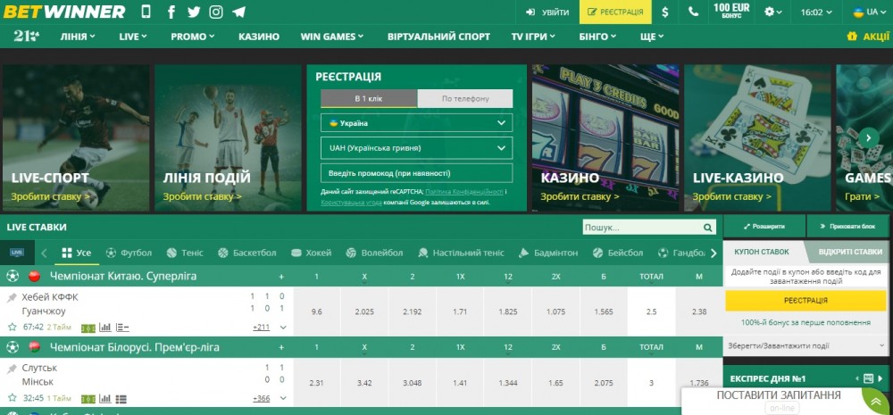 LIVE-ставки в Букмекерской конторе Betwinner
