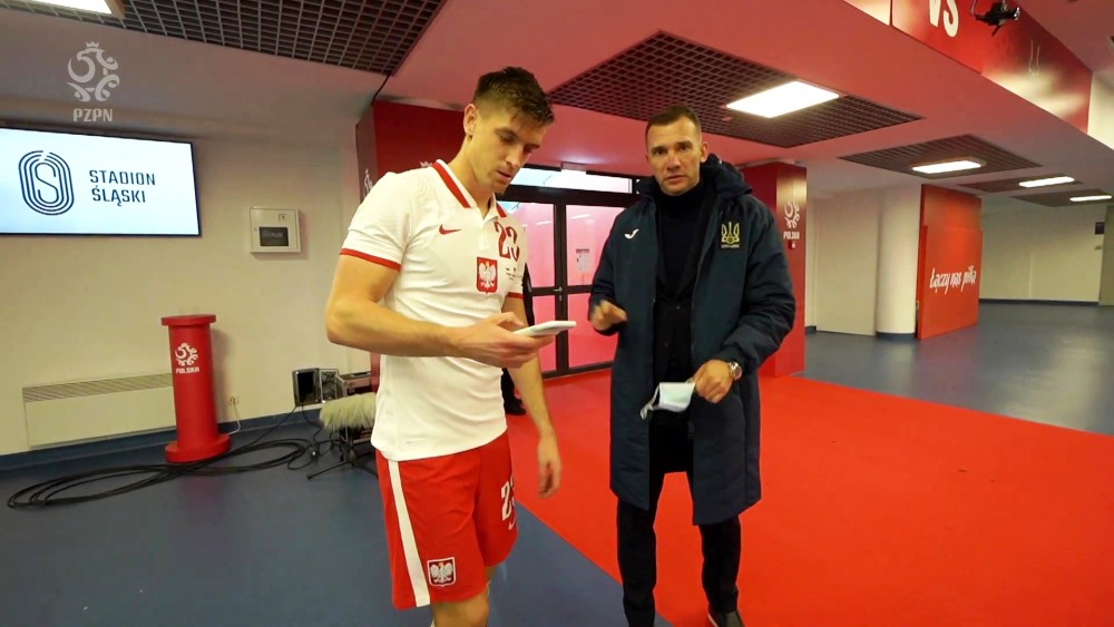 Кшиштоф Пйонтек, який відкрив рахунок у матчі Польща – Україна (2:0), у підтрибунному приміщенні перекинувся кількома словами з Андрієм Шевченком. Обоє свого часу захищали кольори Мілана – вочевидь, саме тому їм було зручніше розмовляти італійською.