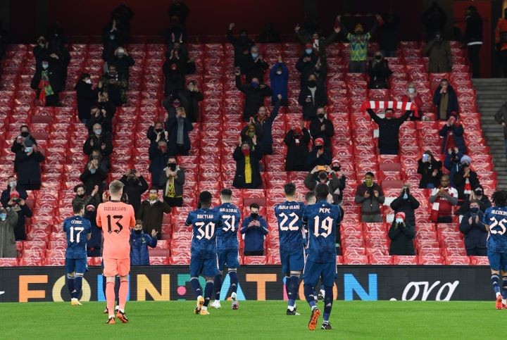 Поклонники «канониров» получили возможность в живую наблюдать за игрой своих любимцев. Две тысячи фанатов посетили «Эмирайтс» и насладились игрой своих кумиров. Это первая за девять месяцев игра на английском стадионе со зрителями.