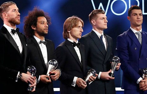 Полузащитники: Лука Модрич («Реал», Хорватия), Андрес Иньеста (экс-«Барселона», Испания), Тони Кроос («Реал», Германия);