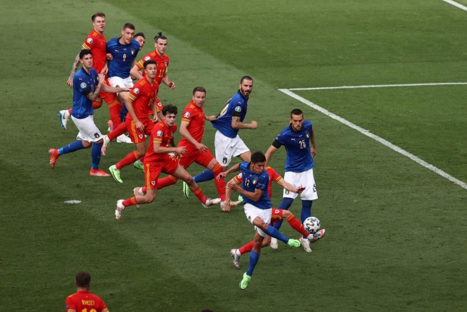 И все же Италия забила еще до перерыва. Маттео Пессина переправил мяч в сетку после подачи Верратти со штрафного. 1:0 на 39-й минуте. Третий гол 24-летнего Пессины в седьмом матче за национальную команду! Здесь же Маттео мог оформить дубль, но немного не дотянулся до мяча – только угловой. После несколько невнятного старта Италия все же захватила инициативу и заслуженно ушла на перерыв с преимуществом в счете. Уэльс свой единственный шанс упустил, но такое положение дел все еще оставляло британцев на второй позиции благодаря лучшей разнице голов, чем у Швейцарии.