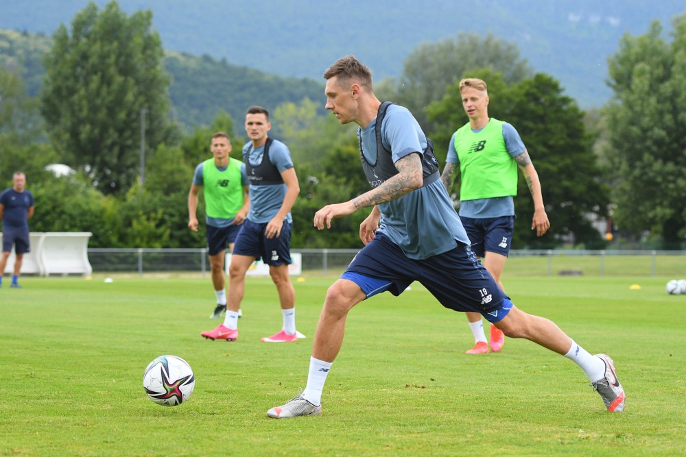 Від сьогодні «Динамо» працює у режимі дворазових тренувань. Перед основною частиною вечірнього заняття на тренувальному полі поблизу Женеви футболісти почули від головного тренера Мірчі Луческу настанови, а також план роботи. Гравці також добре розігріли м’язи, підготувавшись до чергових навантажень.