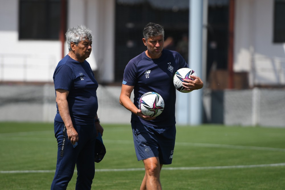 Перед основною частиною заняття гравці працювали у тренажерному залі. Вийшовши на футбольне поле, яке попри воєнний стан чудово підготовлене до тренувань команди, динамівці спершу зібралися у коло, аби послухати установку від Мірчі Луческу.