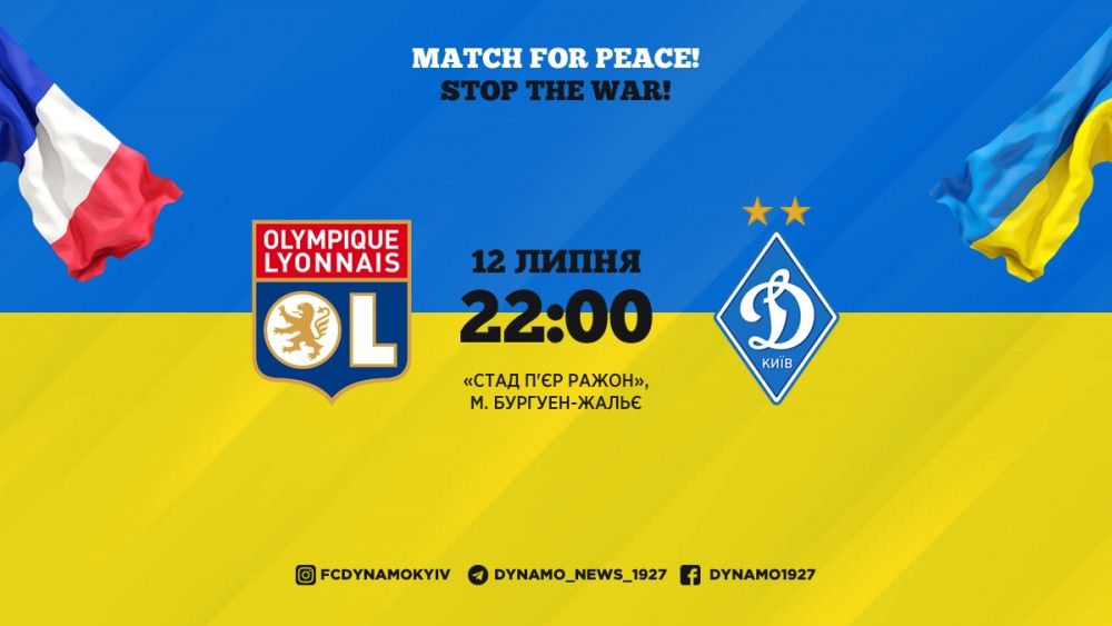 Шостим суперником київського «Динамо» у рамках літнього тренувального збору в Швейцарії, а також у рамках благодійного турне «Match for Peace! Stop the War!» («Матч за Мир! Зупинимо Війну!») стане французький клуб «Ліон».