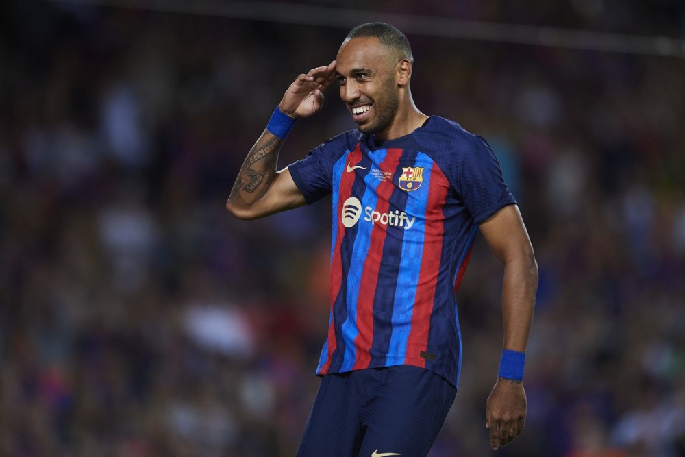 Обамеянг перебрався у «Барселону» взимку цього року на правах вільного агента. Встиг зіграти 24 матчів, забив 13 голів. Угода нападника з «синьо-гранатовими» чинна до 30 червня 2025-го.