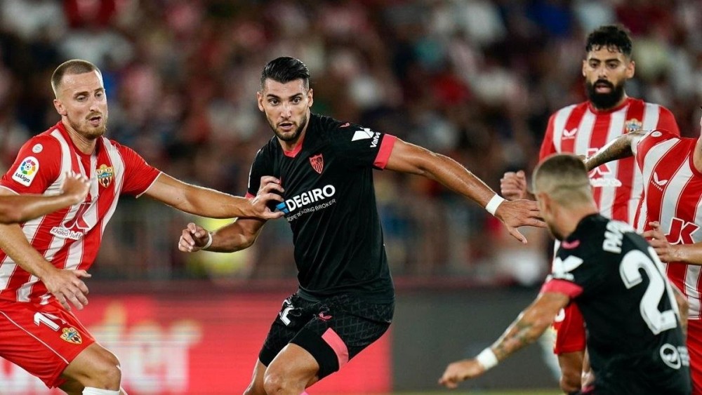 «Рохібланкос» очікувано повели у рахунку в першому таймі. Олівер Торрес головою забив м'яч під ліву стійку після класної навісної передачі від Алекса Теллеса. Але за кілька миттєвостей Альмерія несподівано зрівняла завдяки голу Ларгі Рамазані.