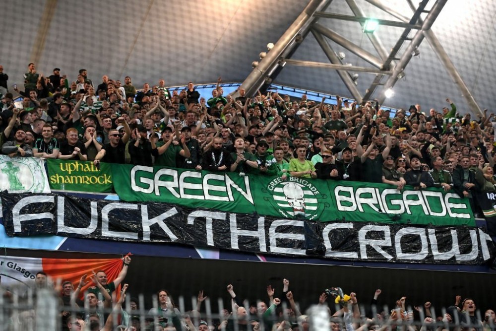 Фани «кельтів» радикальніше висловили свою позицію. На трибунах з'явився банер «До біса корону». Також вони посміялися зі смерті Єлизавети ІІ, згадавши фріка, який вдерся у спальню королеви в 1982-му: «Співчуваємо твоїй втраті, Майкл Феган».