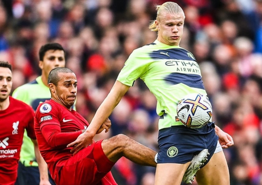 Суперники надто обережно почали поєдинок і не могли створити реальний момент аж до 21-й хвилини. На ній Жоту забули накрити у карному майданчику, але удар португальця по центру виявився легкою здобиччю для Едерсона. Нічим не виділявся і Ерлінг Холанд, який перед грою лякав Ліверпуль серією з 6 результативних турів АПЛ поспіль. Бомбардир Ман Сіті лише під завісу тайму запам'ятався двома ударами з другого поверху. Перший полетів над воротами, а другий в руки Аліссону. Рахунок 0:0 виглядав абсолютно закономірним до перерви.