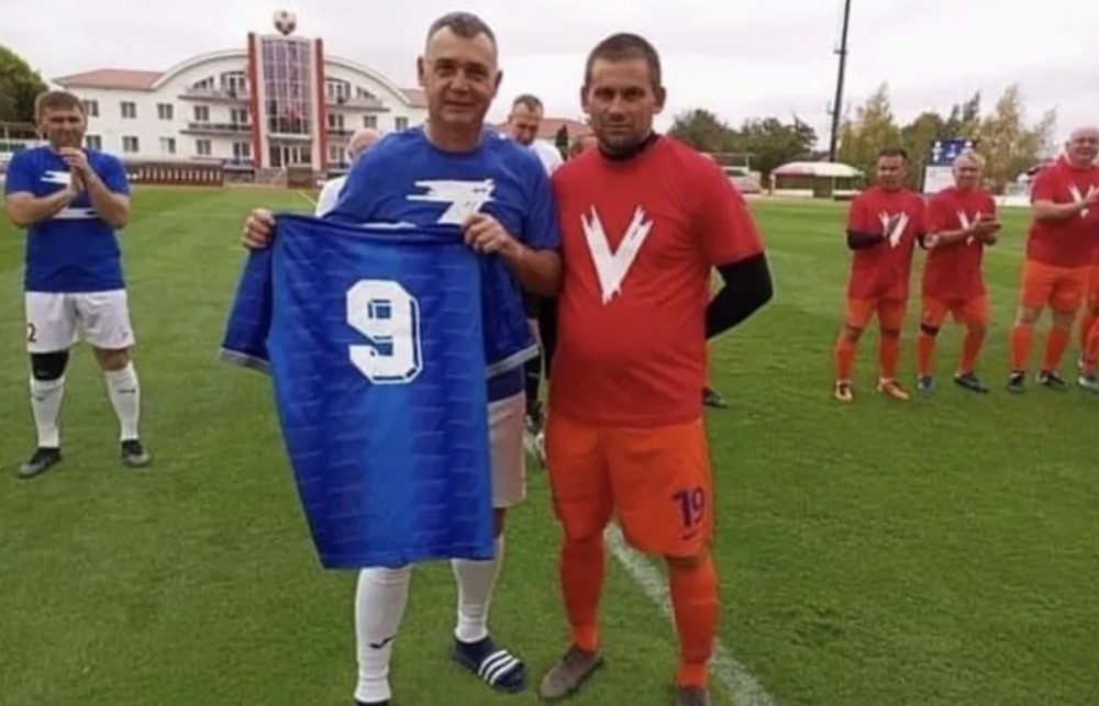 Команди вийшли перед грою в футболках з літерами «Z» та «V». На арбітрах була літера «О».