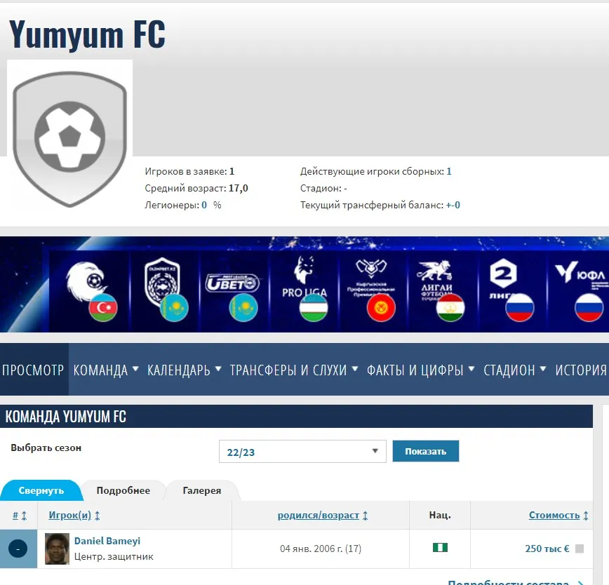 Цікаво, що на порталі Transfermarkt є профіль названого клубу, але там у складі грає лише футболіст, який його вигадав. У команди немає емблеми, а у профілі захисника не зазначено жодного професійного клубу.