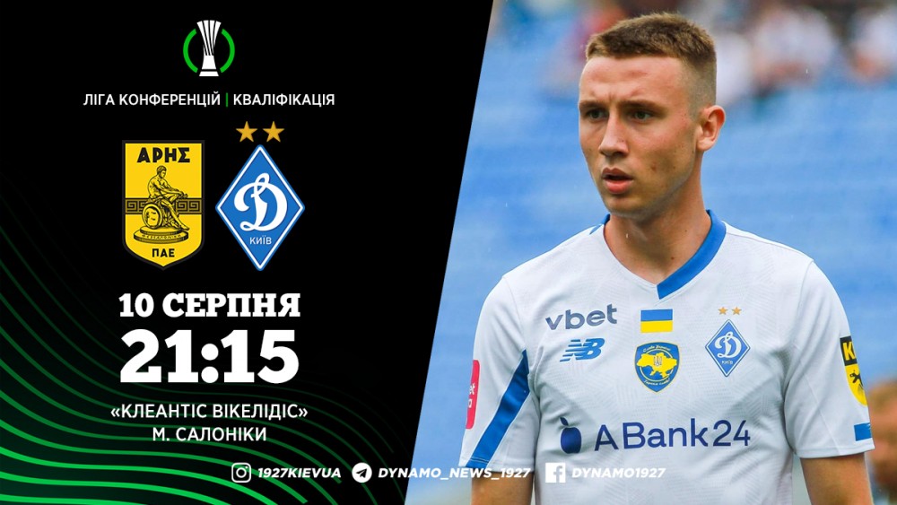 Матч «Аріс» – «Динамо» відбудеться у четвер, 10 серпня. Стартовий свисток на стадіоні імені Клеантіса Вікілідіса у Салоніках пролунає о 21:15 за київським часом.