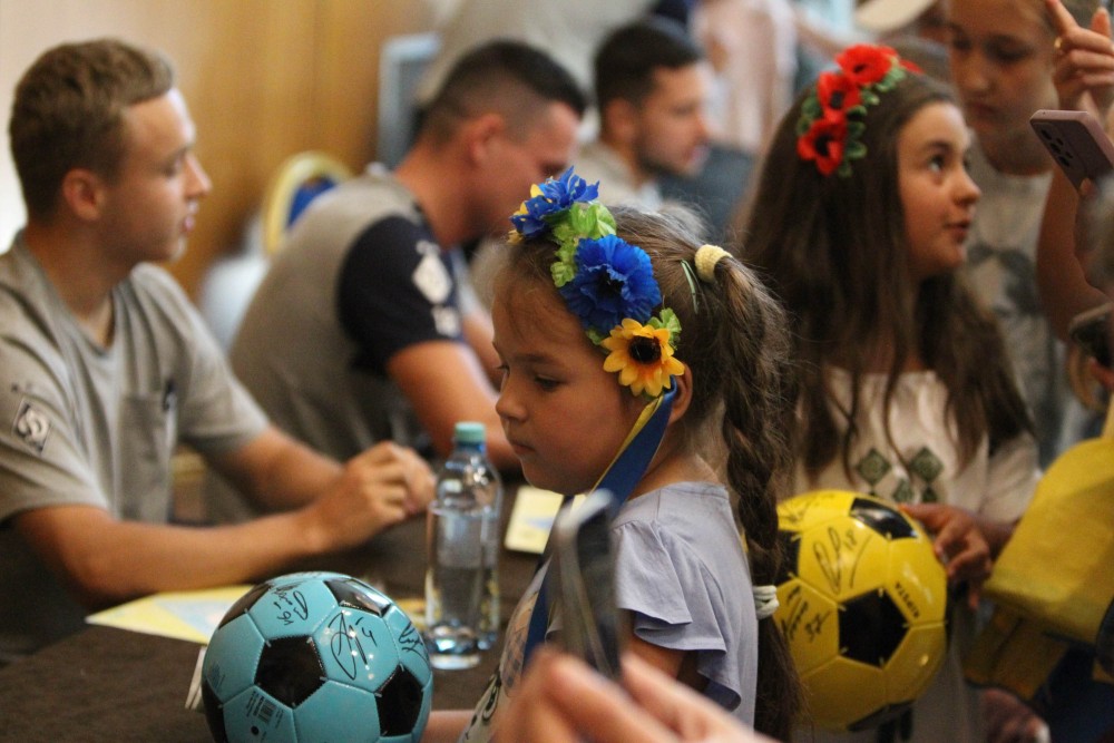 Серед дітей були і ті, хто займається футболом. Зокрема представники дитячої школи «Вікінг» з Херсонщини, які були особливо раді зустрічі зі своїм земляком - Олександром Караваєвим.