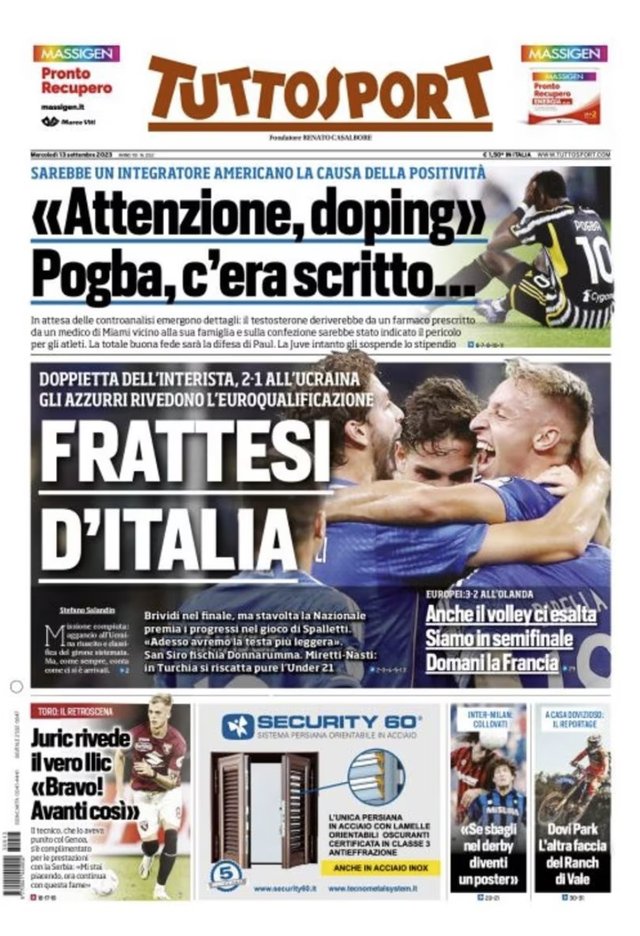 Гра з Україною стала важливим етапом на шляху до зближення з молодою блискучою Італією. Після такого дивимося в майбутнє з меншою тривогою. Були переживання, коли Манчіні зрадив збірну. Але та сторінка перегорнута. У нас новий цикл – без абсолютних чемпіонів, але з ентузіазмом і тренером, який приносить задоволення», – пише провідне італійське видання.