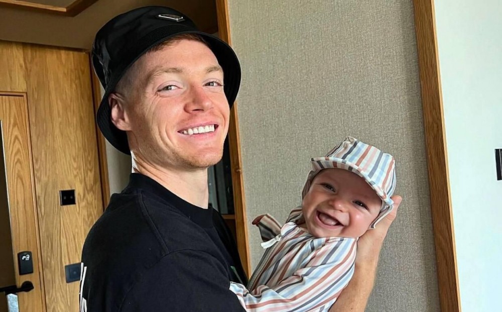 Віктор Циганков, який у березні вперше став татом, поділився зворушливими кадрами із малюком, дружиною Романою та домашнім улюбленцем Лакі у своєму Instagram.