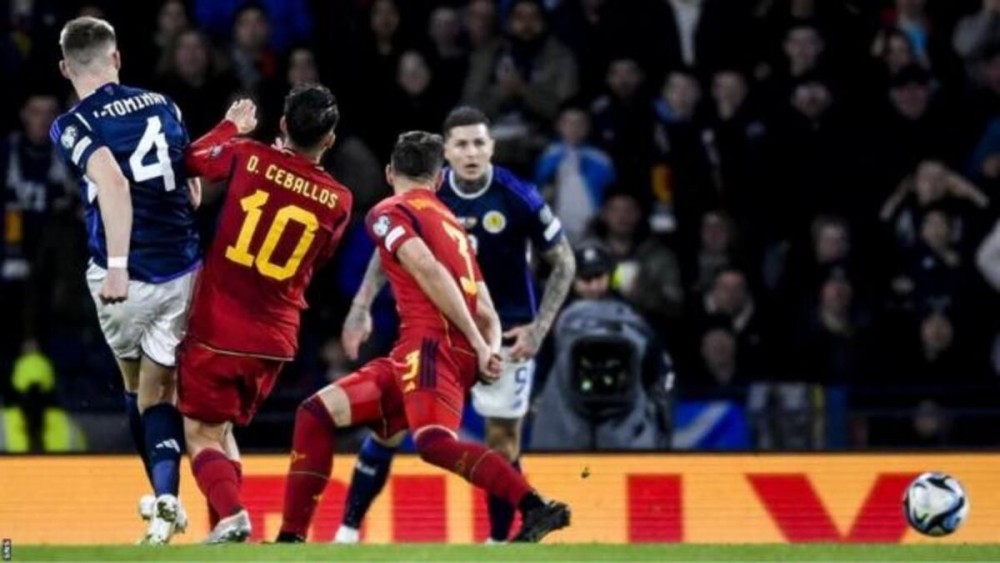 Іспанія розібралася з Шотландією. Відкрити рахунок могли гості, проте арбітр зафіксував положення поза грою. Першим в матчі забив Мората, а на 86-й хвилині Сансет подвоїв перевагу. Такий результат завадив Шотландії достроково вийти на Євро-2024.