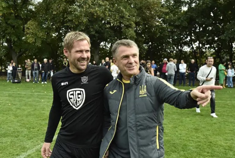 На полі готелю NH, у якому в Празі живе українську збірна, пройшов матч ветеранів Україна – Чехія. Одним із глядачів та гостей поєдинку став головний тренер синьо-жовтих Сергій Ребров, який зустрівся з одноклубником по Вест Хему Томашем Ржебкою, Олександр Хацкевич побачився зі своїм опонентом по УПЛ Томашем Хюбшманом, а Андрій Воронін – зі знайомим ще по Бундеслізі Яном Колером.