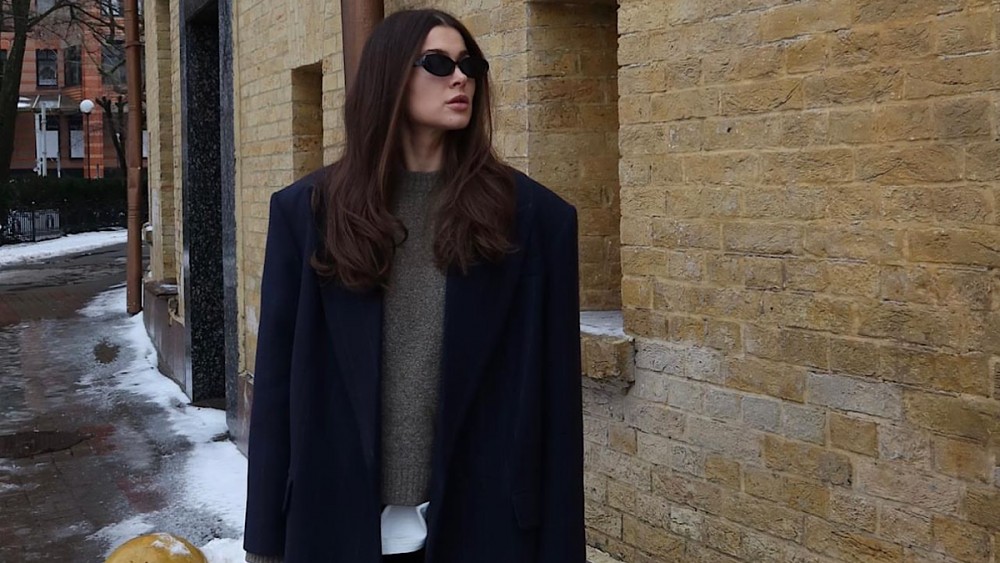 Цього разу вона опублікувала серію світлин, на яких позує під час зйомки на вулицях Києва. На Мирославі шкіряний жакет, штани двох кольорів та незвичні черевики. Образ доповнюють аксесуари.