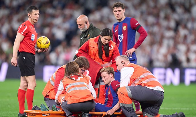 Нідерландець отримав пошкодження у матчі з Реалом (2:3) та покинув поле на ношах. Офіційні соцмережі Барселони повідомив, що у Френкі де Йонга діагностовано розтягнення правої щиколотки.