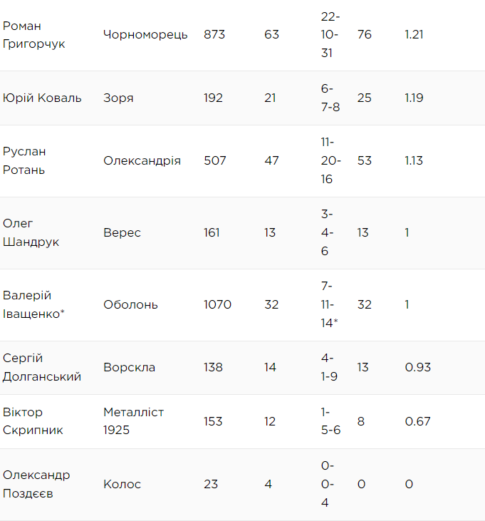 Не можна не відзначити класні показники Олега Дулуба в ЛНЗ і поки що провальні результати Віктора Скрипника в Металісті 1925. Як і Сергія Долганського, який змінив його у Ворсклі.
