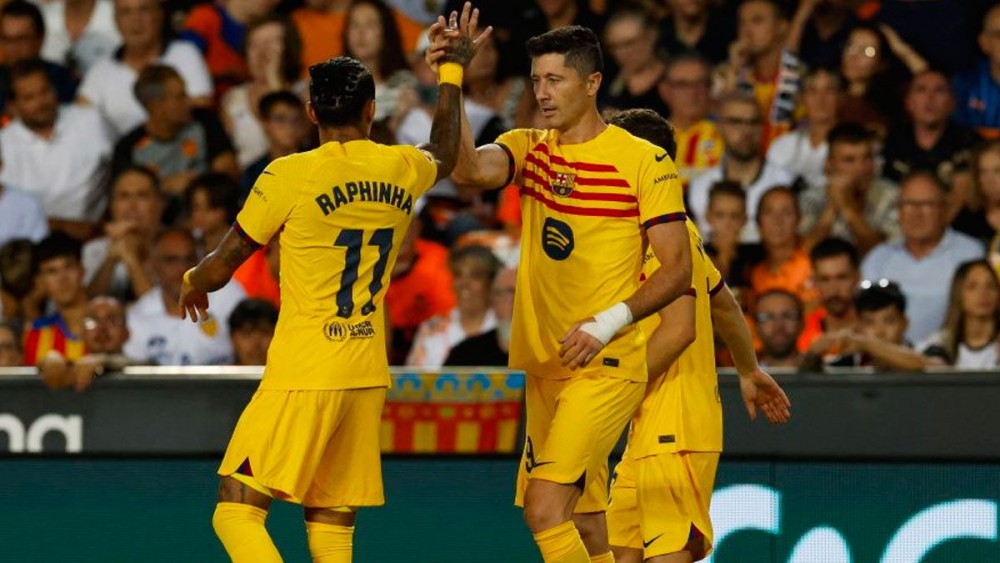 Перший тайм Валенсія провела блискуче, а от на другий команда вийти забула. Всього за хвилину після відновлення гри Ямал вилетів на рандеву з Мамардашвілі, однак постріл з близької відстані грузин парирував. На 48-й же хвилині Рафінья влетів до карного майданчика й отримав по ногах від Москери – це був безапеляційний пенальті. Лєвандовскі впевнено його реалізував. 1:2!