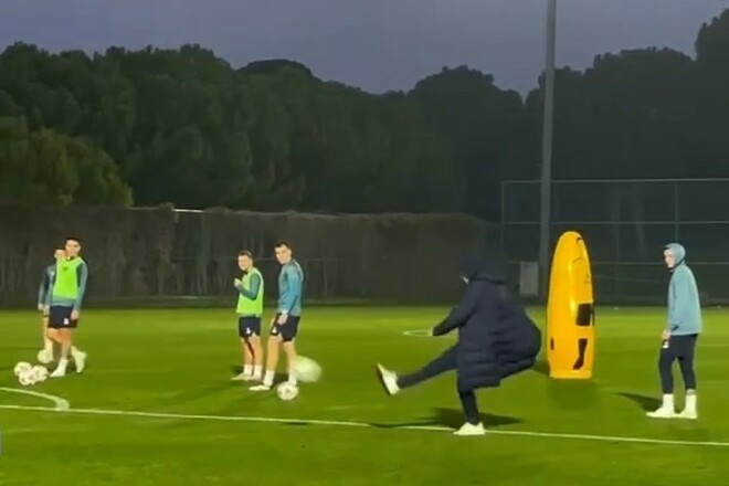 Президент київського клубу приєднався до відпрацювання ударів на оному з тренувань.