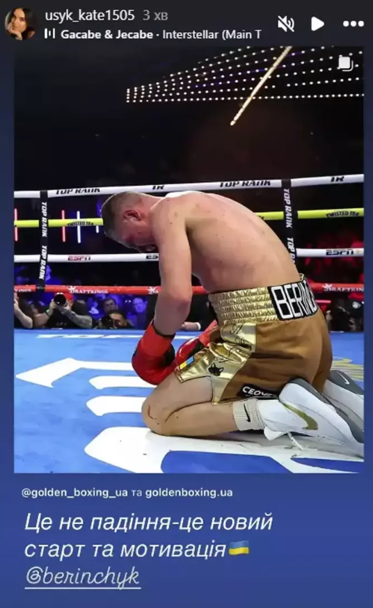 Також Берінчика після поразки підтримала дружина Усика Катерина.
