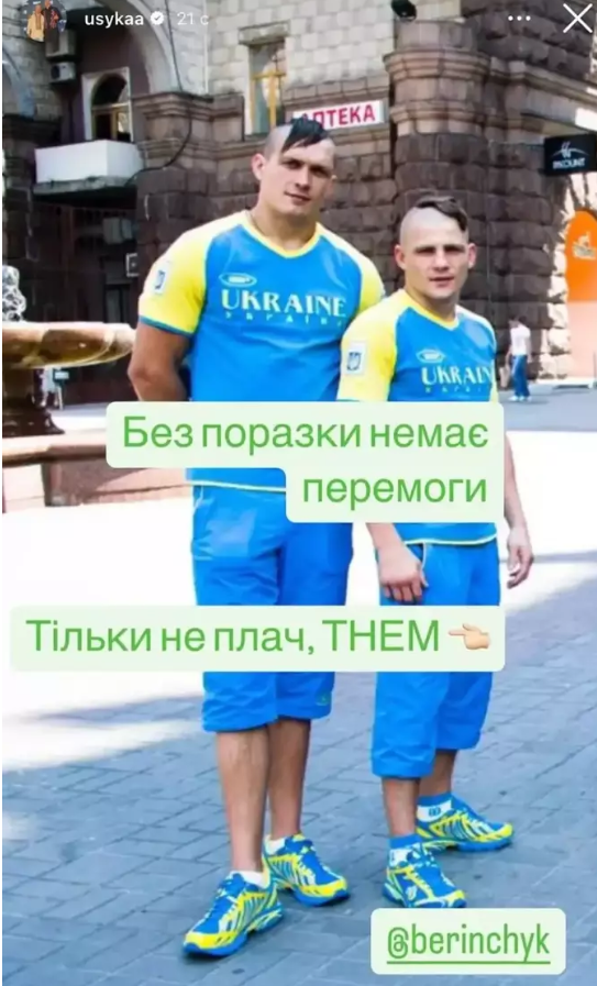 Зірковий супертяж на своїй сторінці залишив спільну світлину з Берінчиком ще з часів виступів за збірну України й написав коротке звернення.