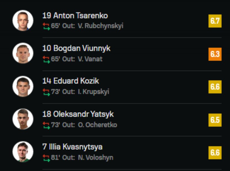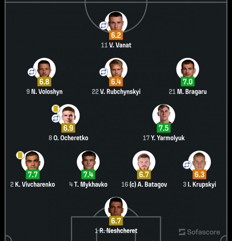 Найкращим у нашій команді став захисник «Динамо» Костянтин Вівчаренко, у котрого оцінка 7,7.