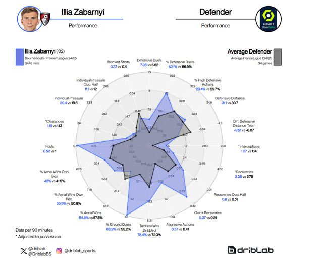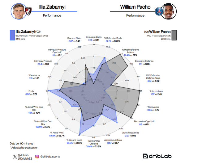 У французькому чемпіонаті є не так багато команд, які здатні зменшити перевагу ПСЖ у володінні, а парижани не так багато допускають моментів біля своїх воріт. Пачо видав досить непоганий сезон 2024/25, але він не завжди діє бездоганно. Забарний стабільніший у своїх виступах, ніж еквадорець. Попри те, що в обох є свої сильні сторони, два гравці досить схожі за стилем. Як і Забарний, Пачо класно оцінює епізоди, що дає йому можливість вибирати правильне позиціювання, досить агресивний і теж класно грає в єдиноборствах.