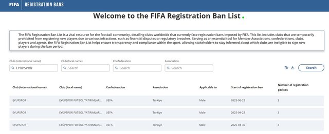 Варто зауважити, що клуб з регіону Еюп має серйозні проблеми, а саме трансферний бан від ФІФА – вже третій за кілька місяців.
