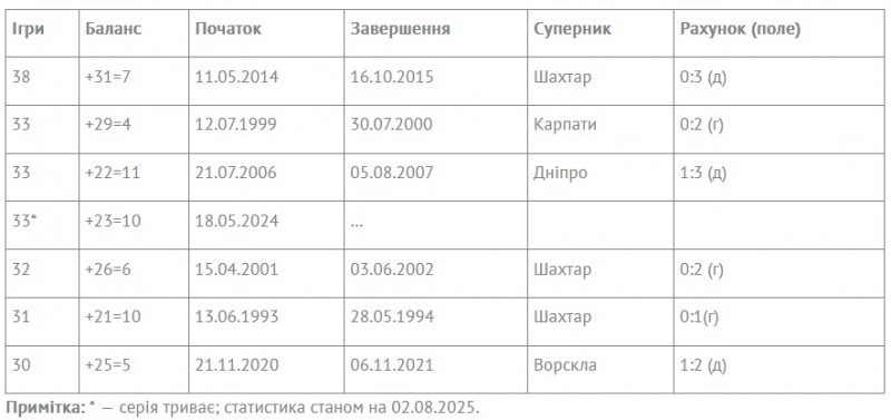 Найдовші безпрограшні серії «Динамо» в Чемпіонаті України