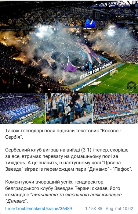 Генеральний директор сербського клубу Звездан Терзіч уже встиг зухвало висловитися на адресу киян, заявивши, що його команда є «сильнішою та якіснішою аніж київське Динамо». Його слова цитує телеграм-канал Troublemakers & Ultras Action.