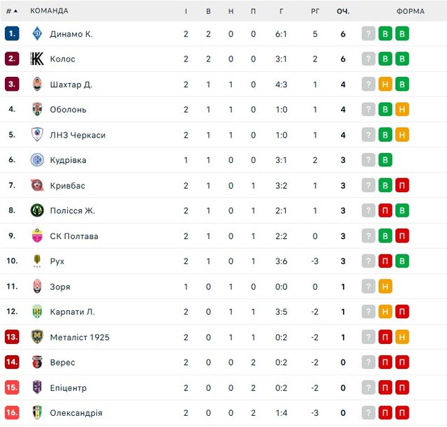 Динамо та Колос єдиними йдуть без втрат після 2 зіграних матчів. У цьому турі кияни розбили Рух (5:1), а ковалівці мінімально здолали Полісся. Поповнити «елітну» компанію ще може новачок Кудрівка, якщо у понеділок переграє Зорю.
