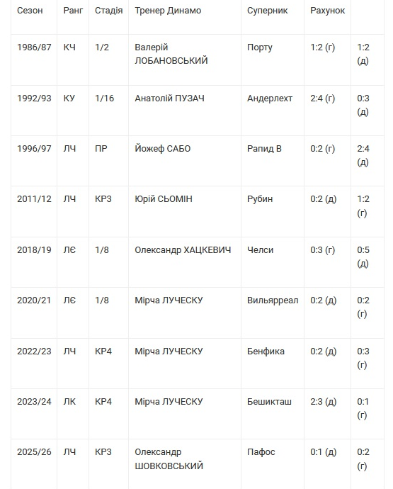 Подвійні поразки Динамо у плей-оф єврокубків