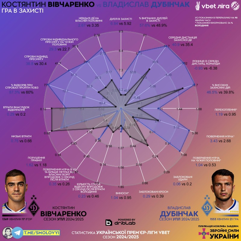 • вища надійність Вівчаренка на фоні Дубінчака - міф, на рівні УПЛ Владислав надійніший 1-в-1 та дає більший обсяг роботи без м’яча