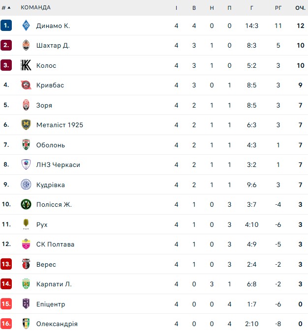 В Українській Прем'єр-лізі закінчився четвертий тур сезону 2025/26. Відомі результати всіх матчів, а також, як тепер виглядає турнірна таблиця.