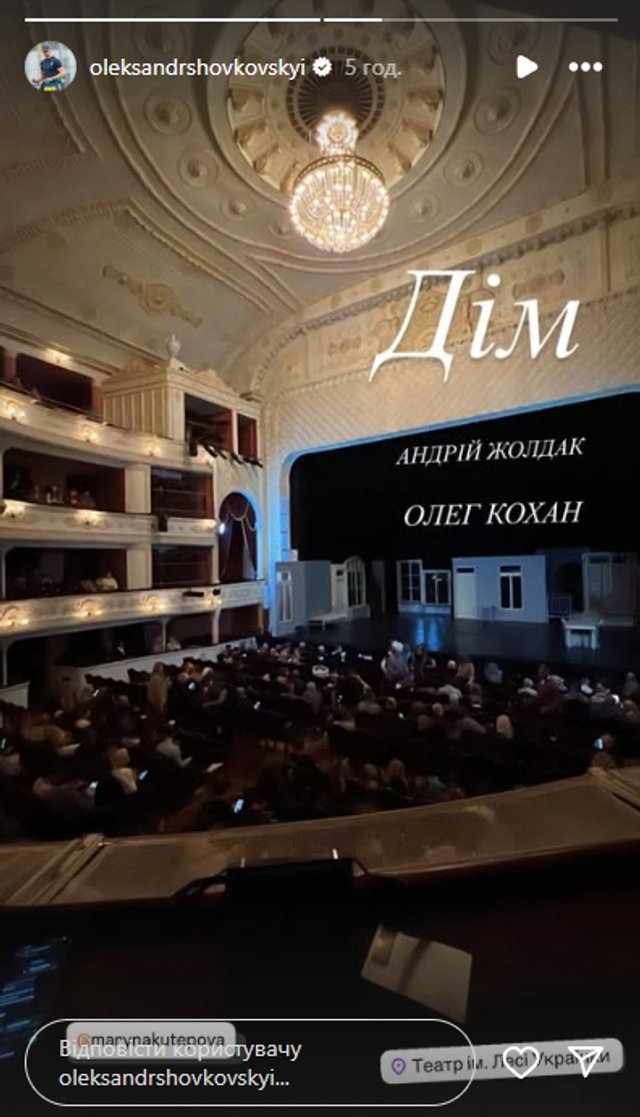 Наставник Динамо разом із дружиною Мариною Кутеповою відвідали Національний драматичний театр імені Лесі Українки у Києві. Там Шовковський перепочив після невдалої серії матчів Динамо, переглянувши виставу Андрія Жолдака та Олега Кохана під назвою «Дім».