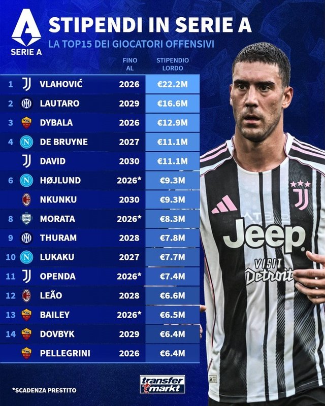 Форвард Роми отримує 6,4 мільйона євро на рік, що дозволило йому посісти 14-те місце у списку разом із партнером по команді Лоренцо Пеллегріні. Найбільшу зарплату серед нападників має Душан Влаховіч з Ювентуса – 22,2 мільйона євро на рік. У трійку лідерів також потрапили Лаутаро Мартінес з Інтера та Пауло Дибала з Роми.