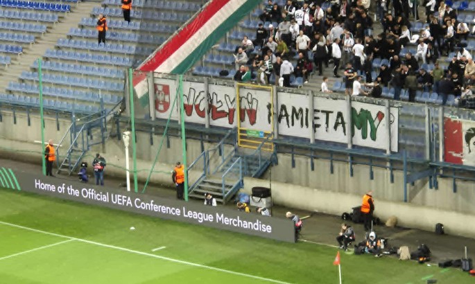 Нагадаємо, що перед матчем «гірники» заборонили вивішувати цей банер, у відповідь на це польські фанати повідомили, що бойкотуватимуть матч, але в справу втрутилася «Вісла», на чиїй арені й грає «Шахтар».