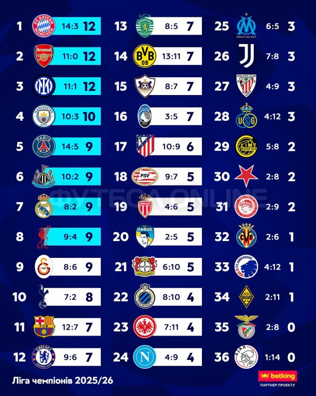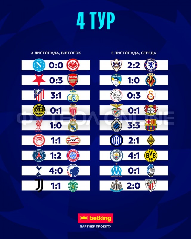 За підсумком чергового раунду ЛЧ лише три колективи йдуть з максимальним показником очок – Арсенал, Баварія та Інтер.