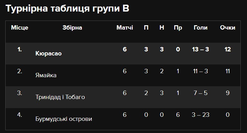 Завдяки такому результату Кюрасао виграло свою групу та напряму вийшло на чемпіонат світу-2026. Ця скромна збірна вперше зіграє у своїй історії на Мундіалі.